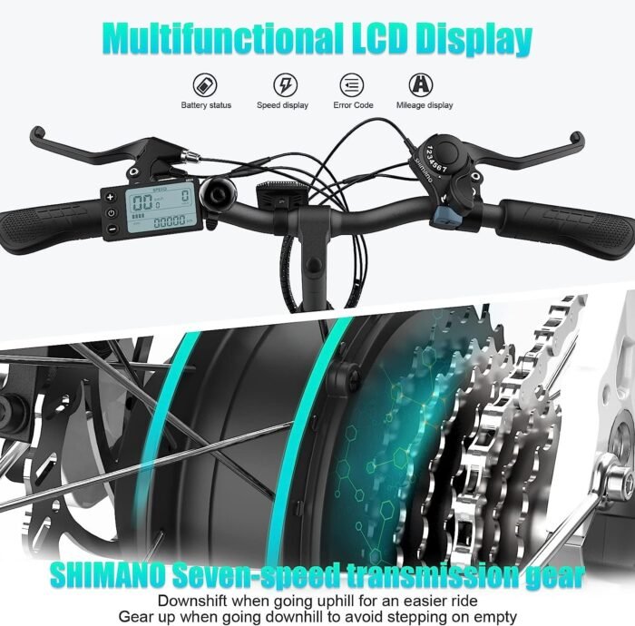 🚴‍Léger et durable: le vélo électrique BK8 adopte un processus de forgeage en alliage d’aluminium ultra-léger, qui présente une dureté et une anti-oxydation élevées. Le vélo pèse environ 24,2 kg et la fourche amortit très bien. Dans le même temps, le jeu d’engrenages Shimano à 7 vitesses est adopté pour améliorer les performances d’alpinisme.Sensible lors des changements de vitesse.