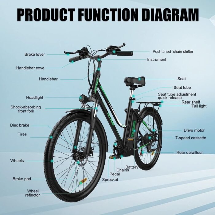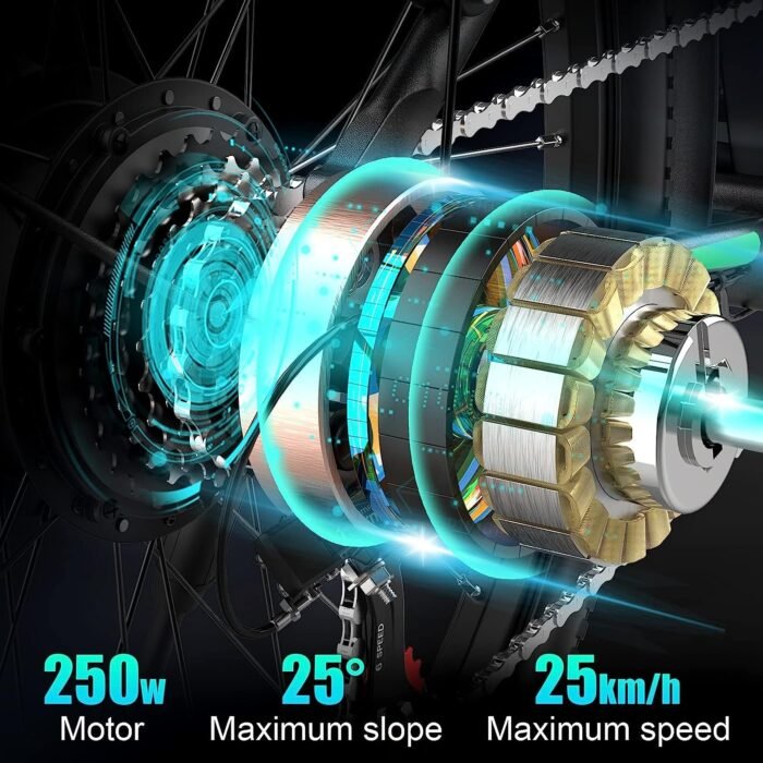 🚴‍Vélo Électrique Puissant:Le vélo électrique est équipé d’un moteur haute performance de 250 W et peut atteindre une vitesse maximale de 25 km/h,Les vélos électriques pour hommes et femmes de 26 pouces vous offrent une expérience de conduite fluide, Vous permet de rouler librement et d’explorer la nature à la montagne et en ville.