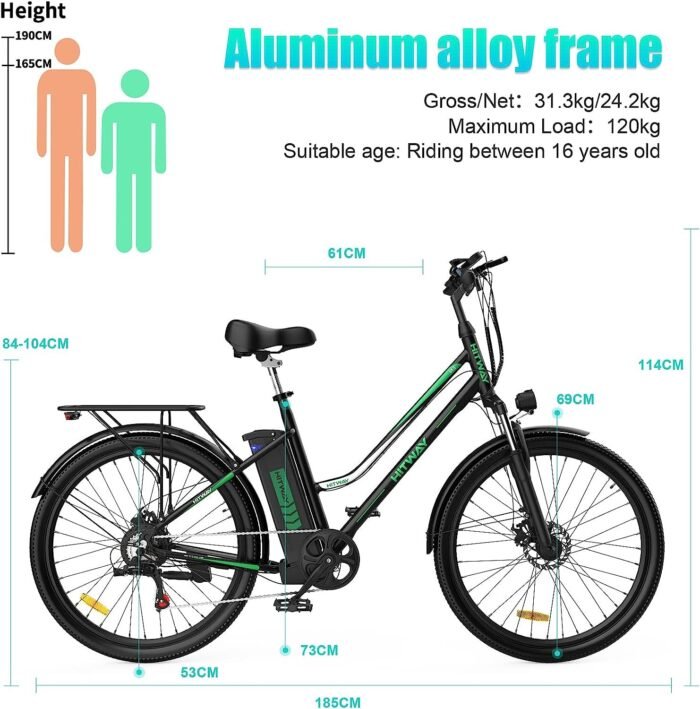 Accueil SPORTS & LOISIRS Vélo électrique HITWAY Vélo électrique, 26” vélos électriques Femme,Moteur 250W,Shimano 7 Vitesses,E-Bike avec Batterie au Lithium Amovible 36V 11,2Ah 35-90km Ebike